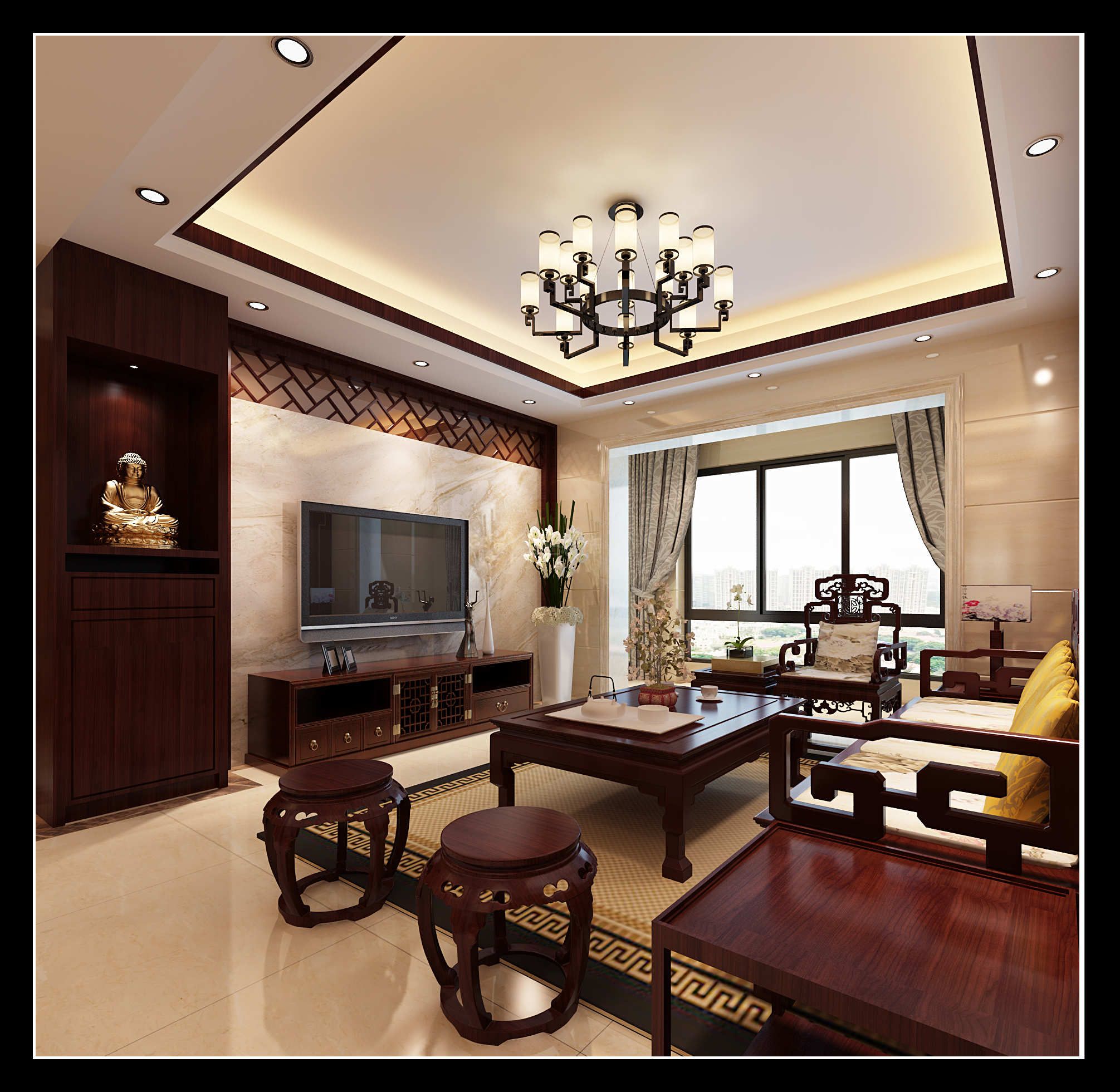 泉州寶龍城市廣場(chǎng)三居新中式風(fēng)格裝修效果圖